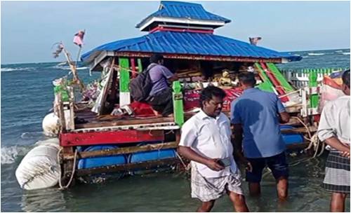 ராமேஸ்வரம் அருகே தங்கச்சிமடம் கடற்கரையில் கடலில் மிதந்த வீடு