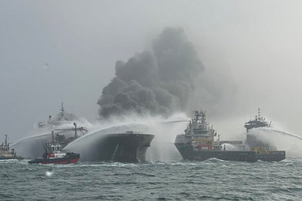 பிரித்தானிய கடலில் இரண்டு கப்பல்கள் ஒன்றுக்கொன்று மோதி பாரிய விபத்து..!!