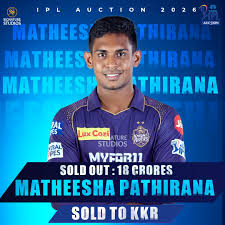 IPL ஏலத்தில் இலங்கை வேகப்பந்து வீச்சாளர் மதீஷ பத்திரணவை 18 கோடி இந்திய ரூபாவுக்கு KKR வாங்கியது.